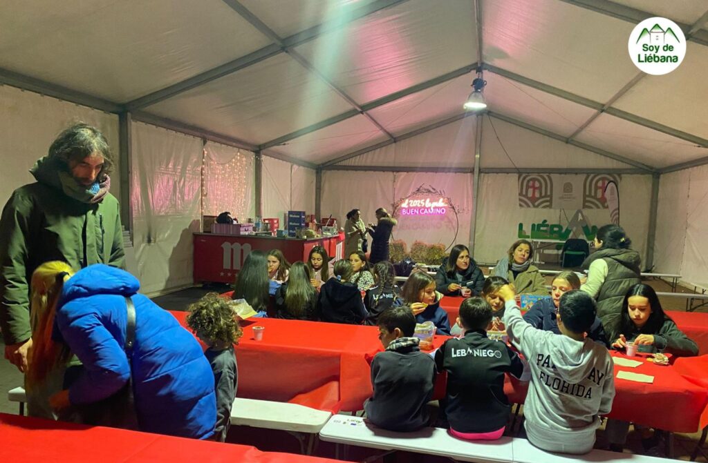Finalizado el recorrido y de nuevo en la carpa, disfrutaron de chocolate con bizcochos, antes de una cena merecida en Potes, con el dinero recogido que les entregaron los vecinos al cantar los aguinaldos.