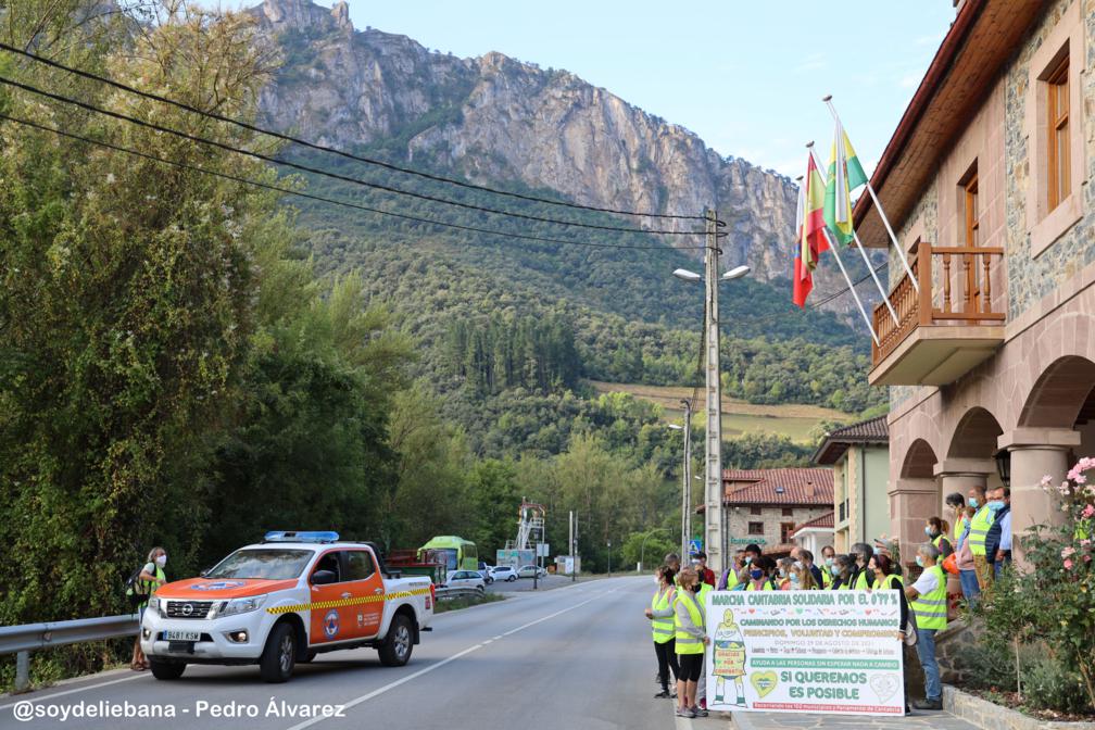 Poco después, la Marcha se reanudó recorrido por carretera los ocho kilómetros que separan la villa de Potes de la localidad de La Vega, donde en el Ayuntamiento de Vega de Liébana, serán recibidos por su alcalde, Gregorio Alonso. Posteriormente, los voluntarios de desplazarán hasta Pesaguero, donde Enrique Sabarís, alcalde del municipio, recibirá al grupo, para posteriormente desplazarse hasta Cabezón de Liébana, donde serán recibidos el alcalde, Jesús Fuente.