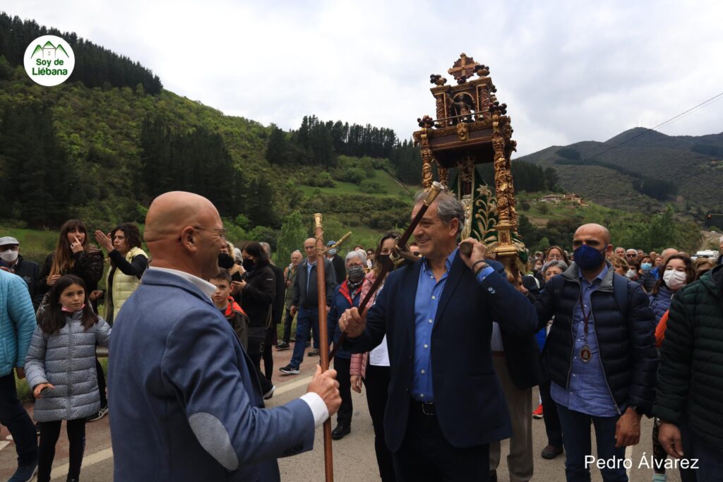 Paso por Ojedo, donde Javier Gómez, alcalde de Potes, chocó el bastón municipal con el que portaba Jesús Cuevas, alcalde de Cillorigo de Liébana, al igual que posteriormente lo haría Cuevas con Jesús Fuente, alcalde de Cabezón de Liébana.