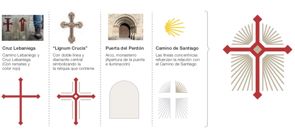 Los elementos gráficos que configuran el símbolo representan conceptos relacionados con el Camino Lebaniego y el Año Jubilar: